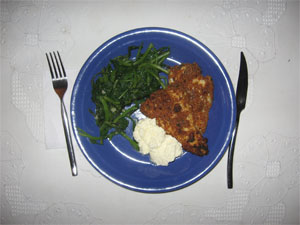 Ontem , após assistir o show do Paulo Padilha no SESC Vila Mariana , ajudei a minha fiel escudeira Maria Olívia , na preparação de um prato indiano o “Tali Machli” : um peixe ( merluza ) empanado em uma mistura de farinha de grão-de-bico , masala (*) , cúrcuma , pimenta chili seca moída , pimenta do reino , coentro fresco picado e sal . Como não achamos a referida farinha no supermercado , o jeito foi torrar grão-de-bico e depois moer no liquidificador … Para acompanhar fizemos “Panir” ( uma espécie de coalhada indiana ) e espinafre refogado no alho … ficou realmente divino !!!