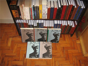 Depois de 2097 páginas finalmente acabei de ler “Finnegans Wake” de James Joyce. Foram os cinco volumes da edição bilíngue “Finnicius Revém” da Editora Ateliê Editorial , traduzida por Donaldo Schüler ( 1648 páginas ) além de dois livros de apoio : “Homem Comum Enfim” ( Here Comes Everybody ) – Anthony Burgess / tradução : José Antonio Arantes – Editora Companhia das Letras ( 303 páginas ) e “Panaroma de Finnegans Wake” – Augusto e Haroldo de Campos – Editora Perspectiva ( 149 páginas ) .