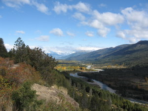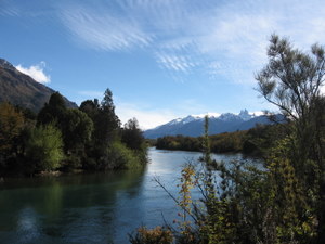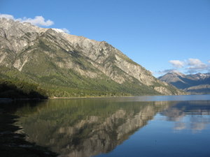 depois um tempo deixamos a Ruta 40 e tomamos a Ruta 71, uma estrada de rípio (cascalho) com cerca de 150 Km que passa dentro do Parque Nacional Los Alerces, de lá tomamos outro atalho para o lago Cholila, mas devido ao rio homônimo que estava cheio, não conseguimos atingir este local… pelo menos deu para curtir a paisagem…curioso que Butch Cassid morou nesta região antes de ir para a Bolívia…