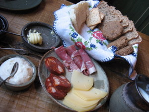pousada esta que servia este excelente café da manhã, com suco de pomelo (grapefruit), chá feito com ervas (nada desta estória de sachezinhos), pães caseiros, presunto crú, salame com páprica, além das exuberantes geléias da região…