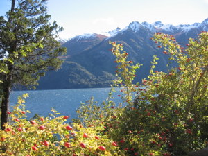 retornamos a Ruta 71, onde avistamos a Lagoa Rivadavia, estas frutas vermelhas que parecem tomates cerejas são na verdade Rosa Mosqueta…