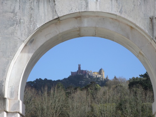 Palácio da Pena visto através de uma arco do Palácio dos Seteais