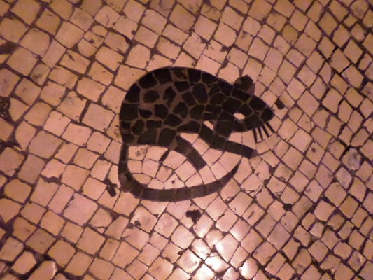 Nas saída fotografei esta calçada com o desenho de um rato em pedra portuguesa… não sei se era homenhagem ao bairro, ou a rua em que se situa o restaurante: (Rua do Sol ao Rato)…ou será que era uma homenagem ao rato que acompanha do deus indiano Ganesh…