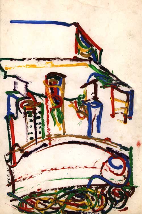 Pintura de um terraço em uma vila no bairro do Belenzinho , realizada em gouache sobre papel , em 1983 .