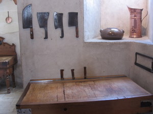 … onde além dos aposentos reais, fomos dar uma olhada na cozinha… vejam a tábua de cortar as carnes…