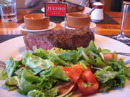 Devido a várias circunstâncias, somente no quarto dia de viagem fomos a uma parilla, tentamos dar prioridade a um restaurante aqui de Vila la Angustura, porém face ao inexplicável preço da carta de vinhos, abandonamos o local e fomos cair em uma filial angosturenha da La Cabarelliza, onde comemos este delicioso bife de chorizo…