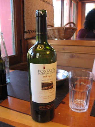 … que foi acompanhado deste excelente malbec patagônico (reparem em uma lágrima vinícola a escorrer sobre o rótulo)…