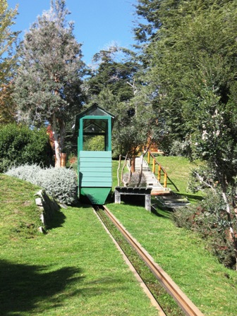 … e para vencer as terríveis escarpas ingremes e retornar a nossa cabana, o providencial auxílio do bondinho-elevador.