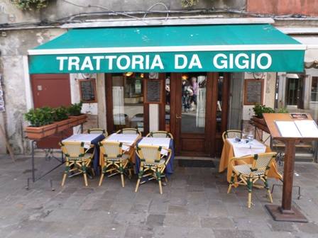 A melhor refeição veneziana foi na Trattoria da Gigio:camarõezinhos com polenta, sardinhas com cebola, salada de polvo, carpaccio de peixe espada defumado, carangueijos e mariscos….