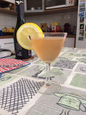 Em uma coqueteleira com gelo despeje o gin, o suco de limão siciliano e o açúcar, mexa por meio minuto. Despeje o líquido sem o gelo em uma taça e complete com espumante gelado. A receita original é com espumante brut… eu usei um rosé brut… que também ficou bom!!!
