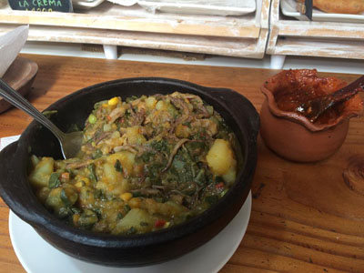 Aqui em Pucon, experimentamos as delícias da culinária Mapuche: Charquican de changle trata-se de um ensopado de legumes com um cogumelo local chamado changle, que só é encontrado nesta época do ano…